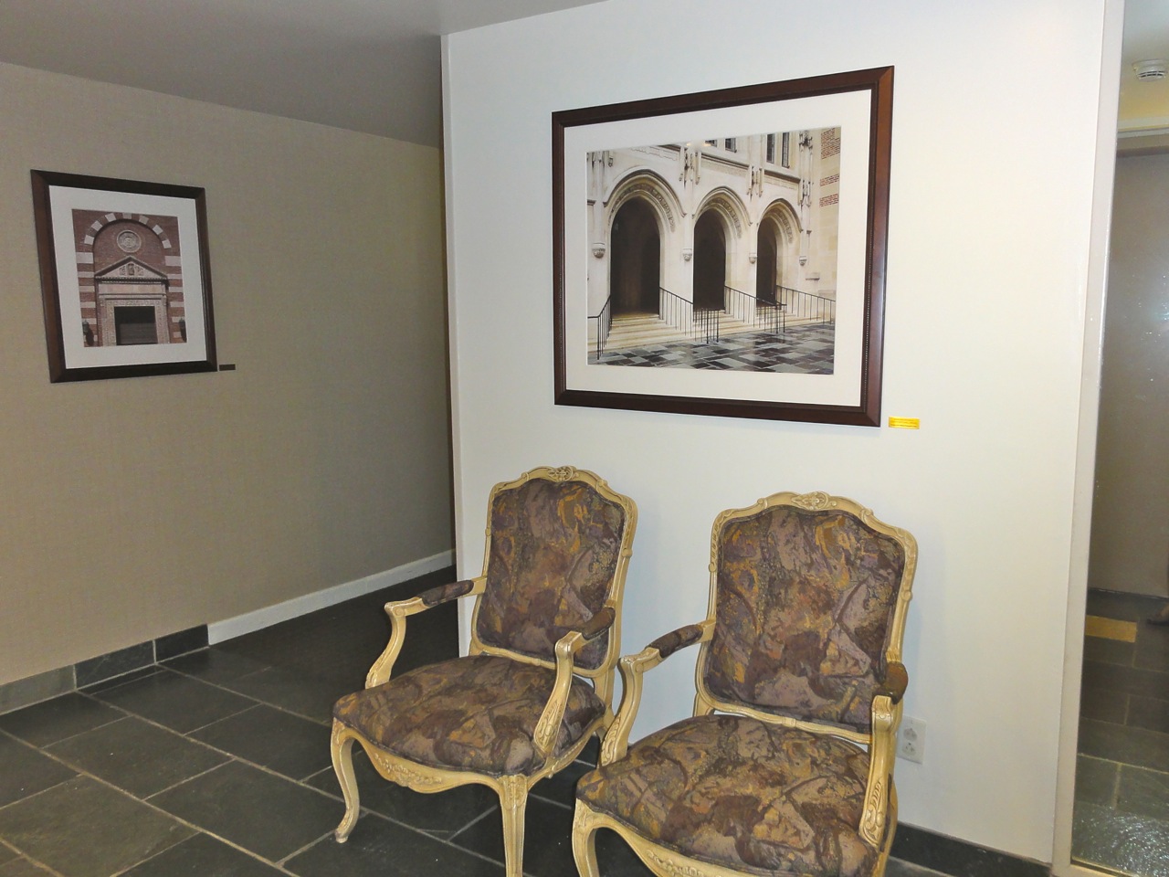 Another view of the building's lobby. The photographs in the collection are architectural themed images by various artists, including Ansel Adams.